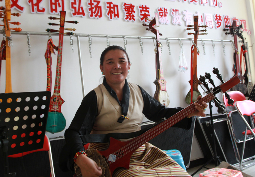 據(jù)了解,除了文化課以外,該社區(qū)針對老城區(qū)的現(xiàn)狀,還為社區(qū)居民準備了民俗活動中心,為社區(qū)里的人在婚慶等大喜事時免費給他們提供場所。此外還開辦了藝術課、教授扎念琴等藏族傳統(tǒng)樂器。次仁旺姆在這里學習扎念琴(六弦琴)已經(jīng)兩年多,她說:“大到70歲,小到30歲,F(xiàn)在最多時候有70號人,大家在這里彈琴、學舞心情十分愉悅!”