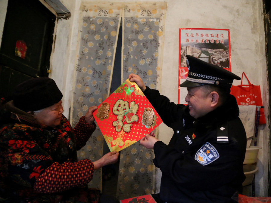 央廣網(wǎng)西安2月13日消息(記者雷愷 通訊員楊長(zhǎng)空 郝黎俊)“朱老,孩子們都快回來(lái)了吧?馬上過(guò)年了,我也過(guò)來(lái)看看您!薄靶》叮憧茨,來(lái)就來(lái)唄,還帶這么多東西,快進(jìn)屋坐。”都說(shuō)大山里年味濃,臨近年關(guān)深山“走親戚”是巴山小站駐站民警范雪艷到大巴山五年來(lái)一直堅(jiān)持的習(xí)慣。