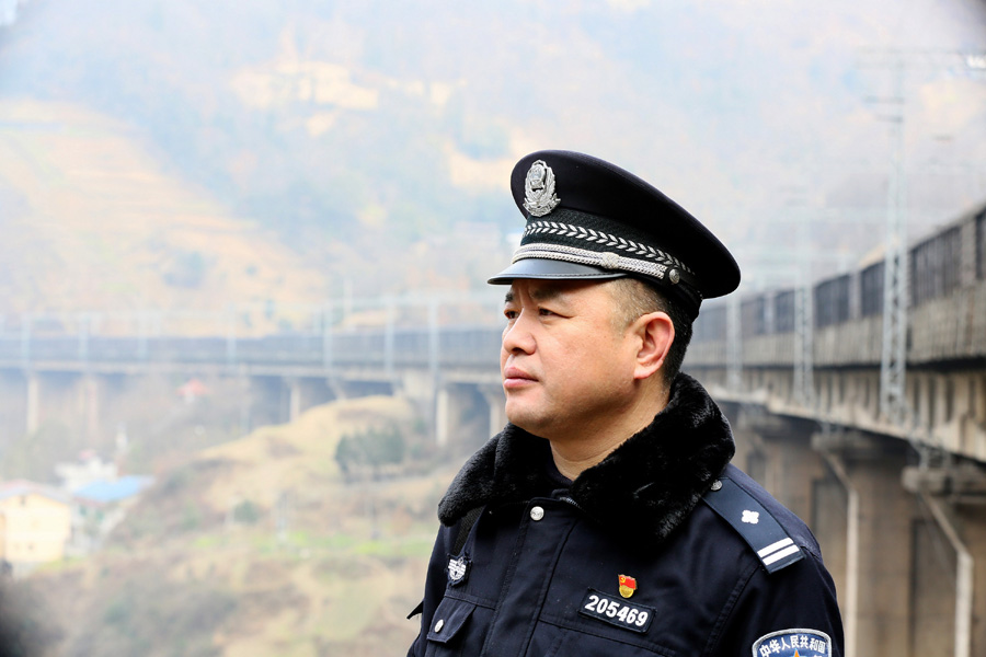 今年50歲的范雪艷是安康鐵路公安處紫陽(yáng)站派出所巴山警務(wù)區(qū)的駐站民警,他所在的巴山車站地處陜川交界、環(huán)境惡劣的大巴山腹地,這里是整個(gè)襄渝線上隧道最長(zhǎng)、橋梁最高、曲線半徑最小、線路坡度最大、海拔最高、生活條件最差的車站。山高路陡,交通不便,出門基本靠走,買什么東西都要到十幾公里以外的小鎮(zhèn)上,加上人煙稀少,經(jīng)濟(jì)落后,治安復(fù)雜,曾經(jīng)這里是貨盜最猖獗的地方,老百姓隨意穿越鐵路和大牲畜上道的問(wèn)題更是家常便飯。在這個(gè)小站警務(wù)區(qū),老范一待就是五年,他建立的“全局明星警務(wù)區(qū)”也成為警民一家親的見(jiàn)證。