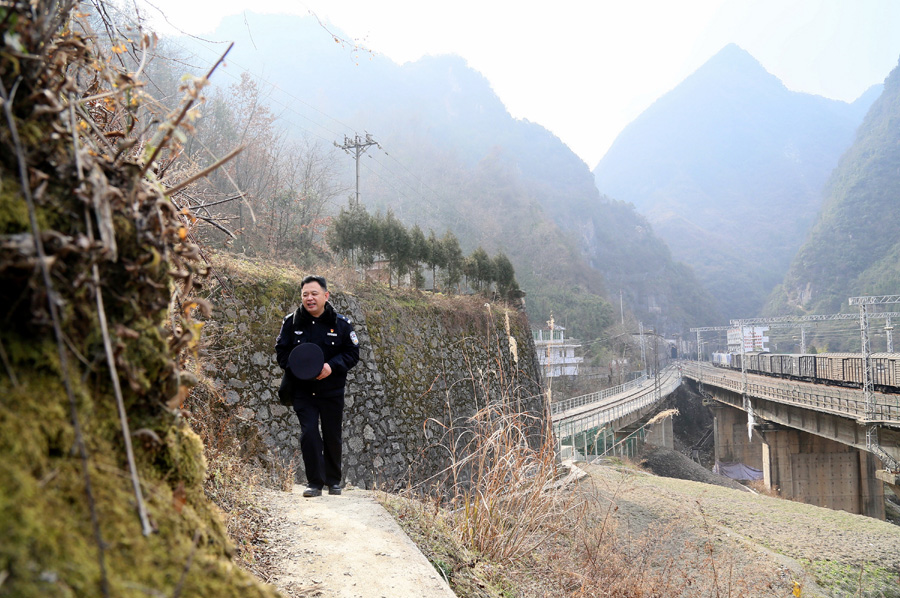探望留守老人、安全宣傳、巡查線路是范雪艷忙碌一天的工作。盡管新年臨近,但大山里回家探親、走親訪友、置辦年貨的人逐漸增多,線路隱患也多發(fā),老范不敢有絲毫放松。從早上8點(diǎn)多出門,回到警務(wù)區(qū)的時(shí)候已經(jīng)是下午5點(diǎn)多,老范打開(kāi)包里,才發(fā)現(xiàn)自己放包里的手機(jī)有一堆未接來(lái)電,都是妻子和父母打來(lái)的!霸敬饝(yīng)今年早點(diǎn)回家陪妻子和父母置辦年貨,但小站離不了人,今年估計(jì)又要和她們爽約了!崩戏墩f(shuō)到,“在小站工作,虧欠最多的就是妻子!北M管經(jīng)常口頭上抱怨,老范的愛(ài)人在行動(dòng)上對(duì)他的支持從來(lái)都是不遺余力。老范說(shuō)自己長(zhǎng)期在小站回不去,家里的老人、孩子都是妻子一個(gè)人在照顧。由于老范平時(shí)經(jīng)常拿自己的工資幫助孤寡老人孩子,家里入不敷出,原本在家賦閑的妻子還專門找了一份酒店的服務(wù)員的工作補(bǔ)貼家用。正是妻子的辛苦付出下,老范才能安心工作。由于工作出色,范雪艷在2017年來(lái)被評(píng)為全國(guó)優(yōu)秀警察,同時(shí)還榮獲鐵路總公司火車頭獎(jiǎng)?wù)拢蔀槊逼鋵?shí)的巴山警務(wù)區(qū)明星警長(zhǎng)。