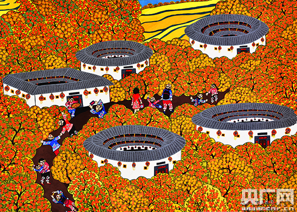 特級作品收藏《土樓金秋桔滿園》 福建省漳平市湯藝萍(央廣網(wǎng)發(fā) 主辦方供圖)