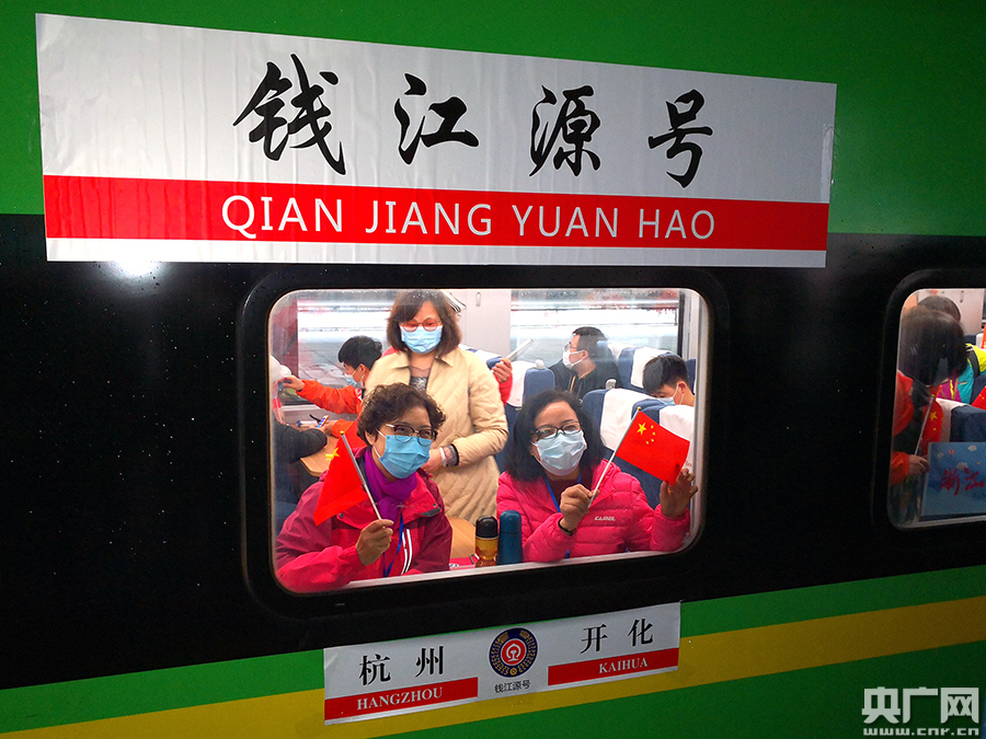 全國首趟春季旅游專列從杭州開出 (央廣網(wǎng)發(fā) 羅驊 攝)