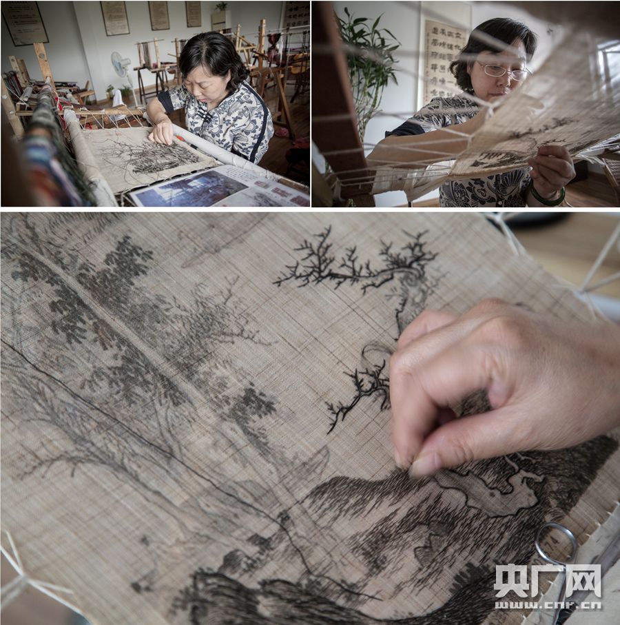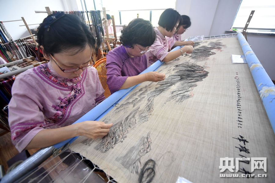 《井岡雄峰》繡制過程(央廣網發(fā) 江西省新余市委宣傳部供圖)