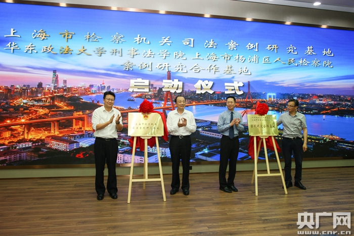 央廣網(wǎng)上海6月10日消息(記者周洪)6月10日,“上海市檢察機(jī)關(guān)司法案例研究基地”在楊浦區(qū)檢察院?jiǎn)?dòng)揭牌,案例研究基地致力研發(fā)的“指導(dǎo)性、參考性司法案例查詢系統(tǒng)”也同一時(shí)間在楊浦區(qū)院上線試運(yùn)行;顒(dòng)中,4名檢察業(yè)務(wù)專家受聘成為基地首批顧問,18名理論學(xué)者和優(yōu)秀檢察官骨干成為基地首批特約研究員。上海市檢察院副檢察長(zhǎng)陶建平、華東政法大學(xué)黨委副書記應(yīng)培禮、楊浦區(qū)檢察院檢察長(zhǎng)譚濱、上海市法學(xué)會(huì)案例法學(xué)研究會(huì)會(huì)長(zhǎng)、華東政法大學(xué)刑事法學(xué)院院長(zhǎng)孫萬懷等人出席揭牌儀式。