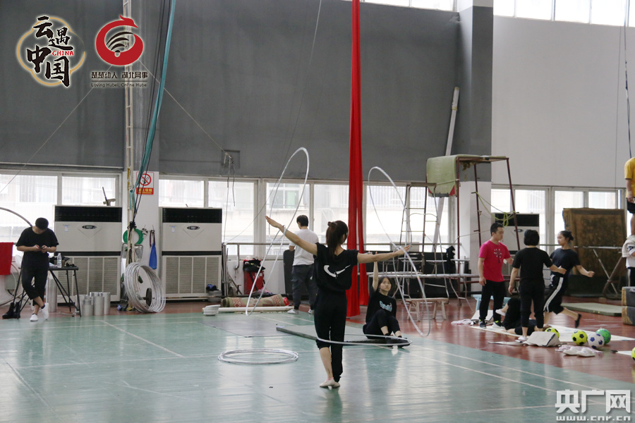 在武漢雜技團(tuán)訓(xùn)練室,演員們正在訓(xùn)練。(央廣網(wǎng)實(shí)習(xí)記者 王可佳 攝)