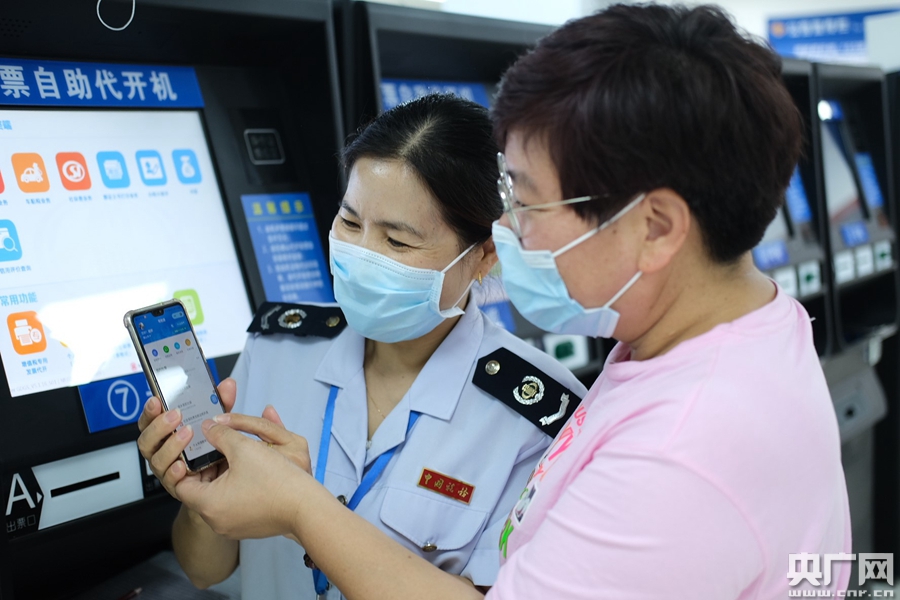 圖為佛山市高明區(qū)稅務(wù)人員積極引導(dǎo)繳費(fèi)人通過“粵稅通”小程序進(jìn)行社保事項(xiàng)辦理(央廣網(wǎng)發(fā) 通訊員供圖)