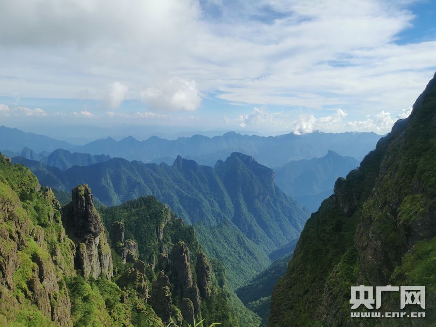 神農(nóng)架林區(qū)群山起伏,植被豐富(央廣網(wǎng)記者 凌姝 攝)