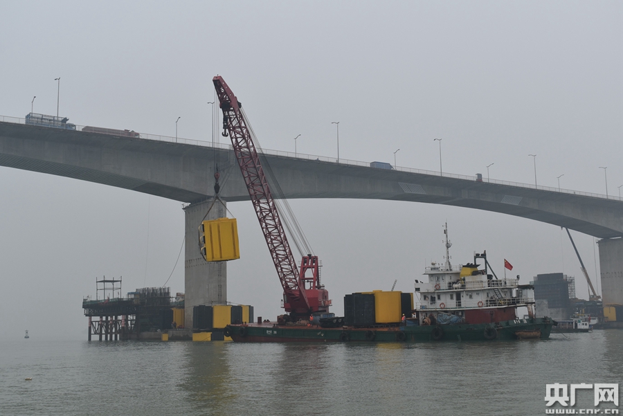 肇慶大橋防撞工程安裝浮箱作業(yè)現(xiàn)場(chǎng)(央廣網(wǎng)發(fā) 肇慶海事局供圖)