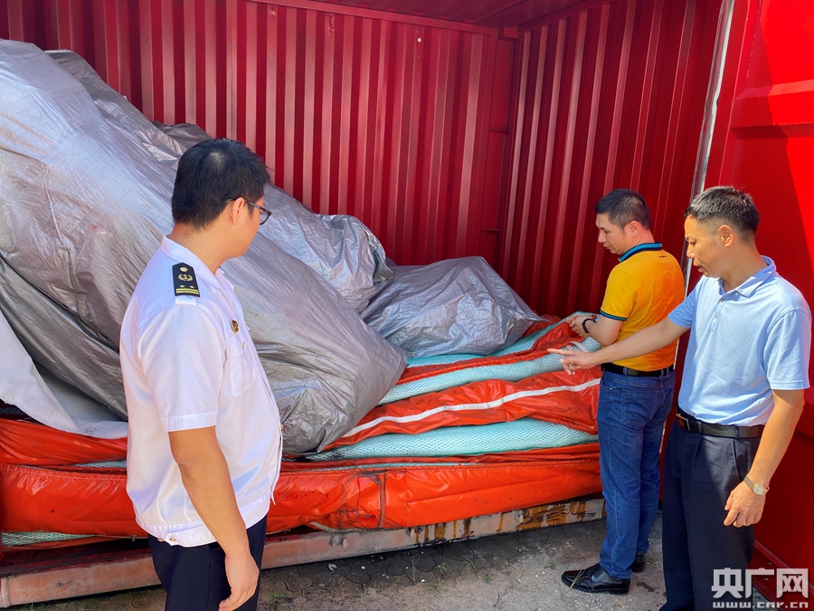 執(zhí)法人員檢查溢油應(yīng)急設(shè)備庫(kù)(央廣網(wǎng)發(fā) 肇慶海事局供圖)