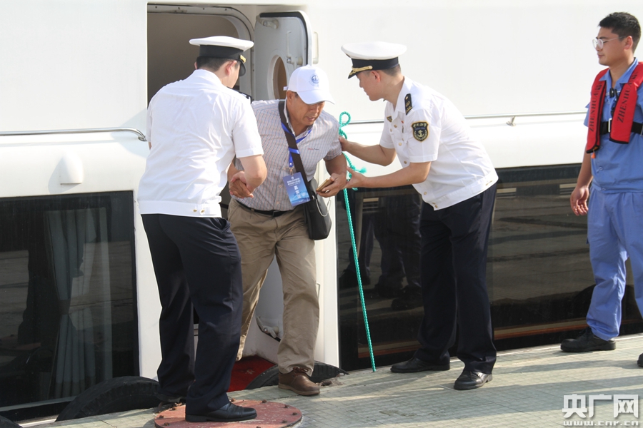 引導(dǎo)珠江片區(qū)“中國(guó)航海日”考察嘉賓下船(央廣網(wǎng)發(fā) 肇慶海事局供圖)