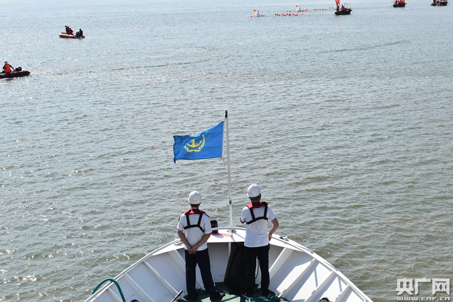 執(zhí)法人員現(xiàn)場(chǎng)維護(hù)“橫渡西江”活動(dòng)秩序(央廣網(wǎng)發(fā) 肇慶海事局供圖)