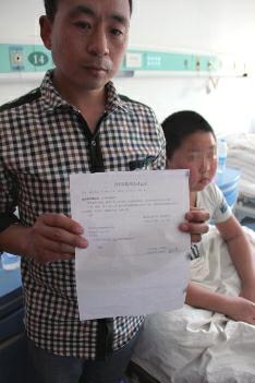 “孩子是下午六點(diǎn)多請(qǐng)假回家的,當(dāng)時(shí)跟我說(shuō)身上疼、破了口子,想用創(chuàng)可貼貼上。我撩起孩子衣服,發(fā)現(xiàn)背上和肚子上有兩道血印子,身上還有一些淤腫的地方。我以為孩子是和班上同學(xué)打架了,后來(lái)一問(wèn)才說(shuō)是老師用板凳打的!痹诓》坷铮骁娴男」煤鷷跃暾f(shuō),聽到孩子一直喊胸悶,她就趕緊找到學(xué)校要求帶孩子去醫(yī)院檢查。當(dāng)晚,縣醫(yī)院醫(yī)生說(shuō)孩子左側(cè)第五根肋骨骨折、多處軟組織損傷,當(dāng)時(shí)就住院治療了。