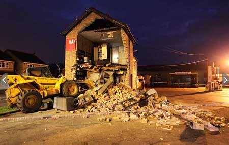 英國笨賊開挖掘機(jī)偷A(chǔ)TM機(jī) 毀掉二層樓空手而歸