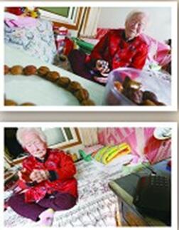 “我們社區(qū)到2016年就有4名百歲老壽星了,這是我們社區(qū)的福氣。”記者在臺東六路社區(qū)居委會負責(zé)老齡工作的崔宏偉副主任帶領(lǐng)下,來到了楊惠祥老人家里。滿頭白發(fā)的老壽星手里轉(zhuǎn)著兩個鐵質(zhì)健身球,坐在床上跟已經(jīng)82歲的女兒姜金英聊天?吹接浾吆椭驹刚呱祥T,楊惠祥老人熱情地招呼大家,非常感激社會對她的關(guān)心。姜金英講述,母親的前半生過得很苦,老了之后終于苦盡甘來。母親是煙臺龍口人,在姜金英只有兩三歲時,父親就不幸去世了,母親沒有再婚,含辛茹苦地把獨生女兒拉扯大。姜金英長大后才知道,父親的去世是母親心里永遠的痛。她的父親其實是枉死的,當(dāng)年國民黨到村里攤派抓壯丁,地主舍不得讓自己的孩子上前線當(dāng)炮灰,就給了爺爺一些大洋,讓父親頂替地主的兒子被抓走了。沒過幾年傳回來消息,父親不幸去世了。爺爺沒把這個消息告訴母親,讓她被蒙在鼓里很多年。