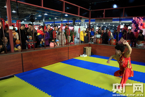 功夫樂(lè)園少兒武術(shù)館在北京通州開(kāi)業(yè),眾多家長(zhǎng)現(xiàn)場(chǎng)觀看武術(shù)表演。