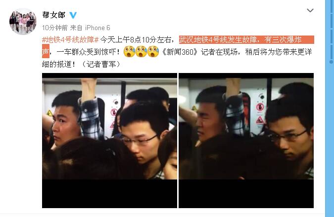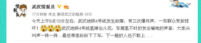 武漢地鐵4號(hào)線發(fā)生故障 有3次爆炸聲