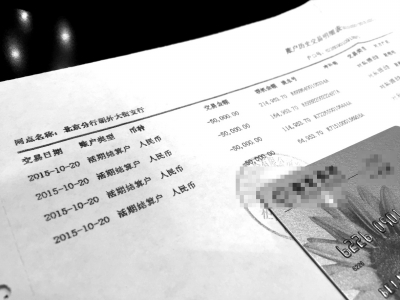 郭先生提供的銀行賬戶交易記錄。京華時(shí)報(bào)記者楊鳳臨攝