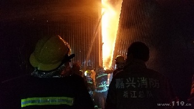 木業(yè)廠起火火光沖天 嘉善消防90分鐘滅火