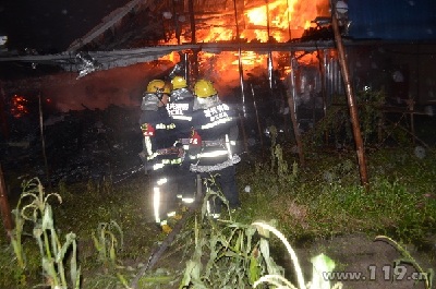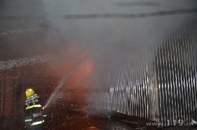 消防官兵到達(dá)現(xiàn)場后發(fā)現(xiàn),著火的是一彩鋼板結(jié)構(gòu)包圍的廠房,里面堆放了大量木製品等易燃物品,現(xiàn)場濃煙滾滾,火光沖天,雖然當(dāng)時(shí)天空飄著小雨,但是當(dāng)時(shí)風(fēng)力較大,火勢呈蔓延趨勢。指揮員立即指揮:將彩鋼板結(jié)構(gòu)的墻壁切割出窗口,然后架起水槍對著火木製品進(jìn)行衝擊;并利用水槍對著火廠房進(jìn)行冷卻降溫,從各個(gè)方向?qū)饎葸M(jìn)行堵截,阻止火勢向周邊蔓延。經(jīng)過消防官兵近一個(gè)半小時(shí)的持續(xù)戰(zhàn)斗,火災(zāi)最終被全面撲滅。為防止復(fù)燃,消防官兵們繼續(xù)用水槍跟蹤冷卻過火木材堆垛,確保不會(huì)復(fù)燃。