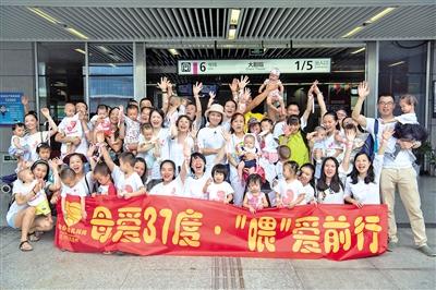 每年8月的第一周是“世界母乳喂養(yǎng)周”。昨天上午10點,20名年輕媽媽帶著自己的寶貝,和數(shù)十名志愿者相約來到重慶軌道交通6號線黃泥塝站。