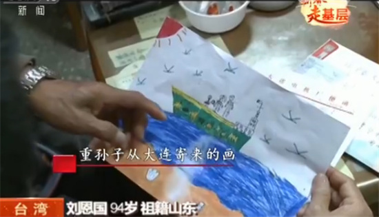 94歲的劉恩國(guó),聽力不好,不怎么愛說(shuō)話,可一提到山東老家,老人馬上打開了話匣子,還領(lǐng)我們到家里看孫子從大陸寄來(lái)的照片。