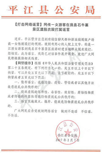 江西女游客在湖南平江旅游遭當(dāng)?shù)厝罕娒撘職蚬俜交貞?yīng)