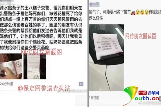 中國青年網(wǎng)北京3月29日電(記者 李永鵬 見習(xí)記者 劉利影)近日,河北省保定市淶水縣某車主因3月26日在縣城道路上違法停車,被值勤民警張貼“違法停車告知單”。事后,該車主將“違法停車告知單”配以辱罵性的文字在“朋友圈”發(fā)布并號召他人轉(zhuǎn)發(fā)。3月28日,該車主因?qū)め呑淌卤痪叫姓辛。事后,該車主寫出了書面道歉信?/p>