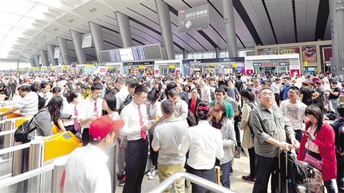 5月1日,北京南站檢票口人頭攢動。當日是五一假期最后一天,全國各地公路、鐵路迎來返程高峰。