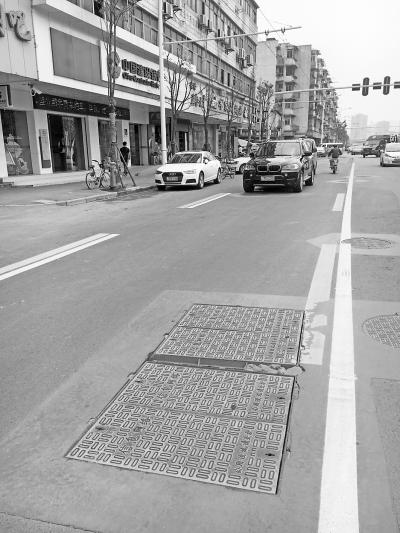 昨天上午,記者根據(jù)來電線索,在漢陽大道532號(hào)花前樹下小區(qū)門口,看到了公交車專道上那幾個(gè)令王先生等居民鬧心的窨井蓋。只要有車子碾過,窨井蓋就會(huì)發(fā)出巨大的響聲。
