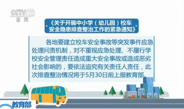 《通知》還明確,各地要建立校車安全事故等突發(fā)事件應急處理問責機制,對不重視應急處理、不履行學校安全管理責任造成重大安全事故或造成惡劣社會影響的,要依法追究有關(guān)責任人責任,并將排查整治情況于5月30日前上報教育部。