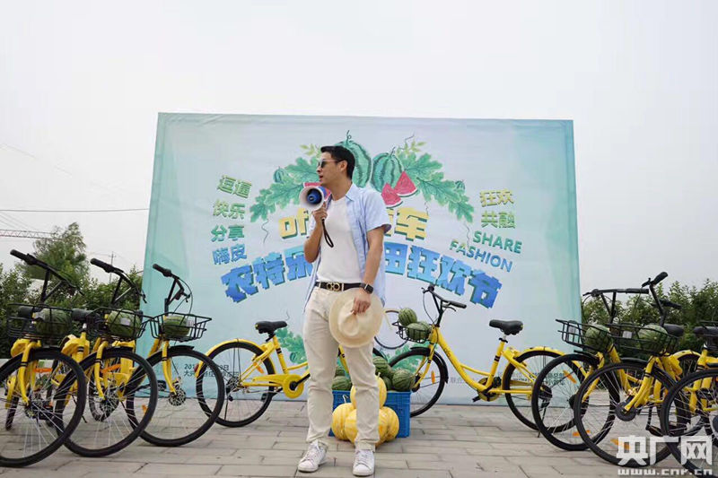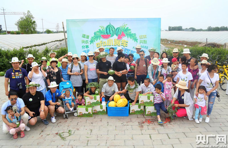“樂(lè)享瓜田 ofo小黃車(chē)瓜地騎行狂歡”在龐各莊舉行。