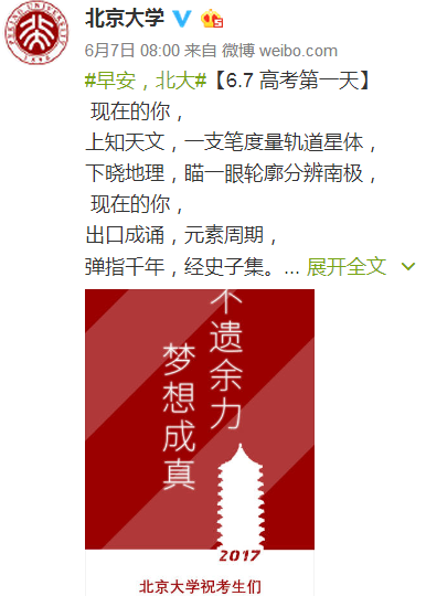 人民網(wǎng)特摘錄了部分名校對(duì)考生的寄語,祝福高考,為夢(mèng)想加油!