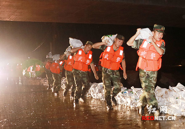 紅網(wǎng)長沙7月1日訊(通訊員 楊韜 吳建波 記者 劉怡斌)暴雨!大暴雨!特大暴雨!橙色預(yù)警!紅色預(yù)警!長沙、益陽、懷化、湘西、岳陽、邵陽等地接連告急!防汛應(yīng)急響應(yīng)提升至Ⅱ級!6月以來,全省平均降雨量已破歷史極值。自6月30日起,武警湖南省總隊近兩千名兵力兵分多路、持續(xù)作戰(zhàn),截至目前已累計轉(zhuǎn)移群眾5000余人,加固河堤近20公里,封堵管涌等險情10余處。
