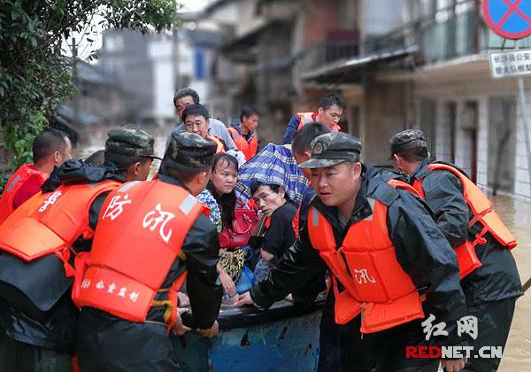 1日下午15時(shí)30分,長春垸新橋河鎮(zhèn)烈公橋段河堤又密集出現(xiàn)十二處小管涌,救災(zāi)官兵來不及洗去臉上的泥土,又投入到緊張的救援工作中,兩個(gè)小時(shí)候,十余處險(xiǎn)情全部被排除。6月30日下午18時(shí),暴雨侵襲下的湘西沅江水位持續(xù)上漲,瀘溪縣境內(nèi)浦市至武溪段全面超警。武警湘西支隊(duì)115名官兵連夜奮戰(zhàn)在一線,全力抗擊洪峰。在武溪鎮(zhèn)五里洲村,截至目前,該支隊(duì)共疏散、轉(zhuǎn)移群眾1000余人,排查化解各類安全隱患6起,裝填沙袋2000多袋,打好木樁500余個(gè),幫助轉(zhuǎn)移財(cái)產(chǎn)物資50余萬元。1日凌晨5時(shí),洪水漫灌懷化辰溪縣城,城區(qū)到處一片汪洋,全域進(jìn)入防汛1級應(yīng)急響應(yīng)。懷化支隊(duì)50余名救援官兵迅速馳援,利用自帶皮劃艇和征用民用木船等手段,深入老城區(qū)中心轉(zhuǎn)移受困群眾800余人。救援中,一名高燒兩天多的4歲女孩被困3樓家中,該支隊(duì)參謀長王良華帶一艘皮劃艇避開縱橫交錯(cuò)的架空電線,成功將其轉(zhuǎn)移至附近醫(yī)院。