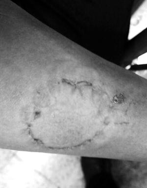 昨天,網(wǎng)曝地鐵5號(hào)線上一便衣警察在抓色狼時(shí)被咬傷。北京晨報(bào)記者從照片中看到,一名便衣民警的手臂上有一個(gè)圓形、深深的牙印,局部還有血跡。此事引發(fā)了網(wǎng)友對(duì)色狼的聲討。