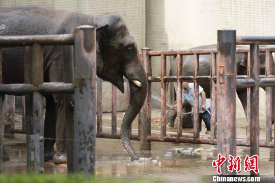 “亞洲象在夏天很喜歡水,所以我們主要是通過淋浴、食物和藥物的方式對它們進行防暑降溫!敝貞c動物園高級畜牧師滕明生說,當環(huán)境溫度達到37℃以上時,會給亞洲象投放降溫食物!傲茉∈请S時在做,當它表現(xiàn)得煩躁時,就會給它身上淋水,還會把大象活動周邊區(qū)域都澆濕!彪魃f,夏季飼養(yǎng)員還會將防暑降溫的藥品“十滴水”根據(jù)大象體重調配后放入飲水中,“每天上午下午都喂一次”。