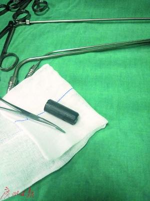 藏在男子氣管的大頭筆筆帽被取出。