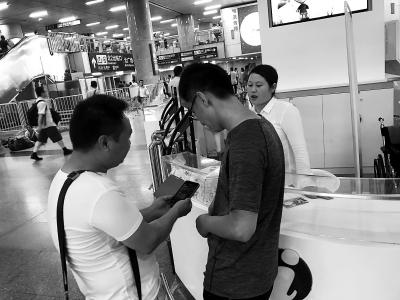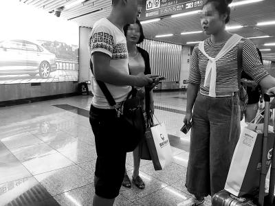 在站外收卡的人不止該男子一人,欄桿附近約有七八個(gè)人,其中還有兩名女子。有兩名拖著行李的女子走向地鐵進(jìn)站口,一名穿短袖的男子擋在兩人前方問是否要退卡,其中一名女子掏出幾張卡問他:“卡里還有余額!薄拔夷軒湍悴橛囝~。”男子掏出手機(jī),將卡放在手機(jī)背后,點(diǎn)了幾下屏幕!翱ɡ锸A31元錢,加上押金20元,我一共給你41元吧?”另外一名女子說:“你少收點(diǎn)吧?”該男子說:“少收你兩塊吧,成不成?”女子點(diǎn)頭,于是男子掏錢,女子將卡給他。每一名收卡人收取的費(fèi)用不等,其中有一名女子向乘客收15元的費(fèi)用。