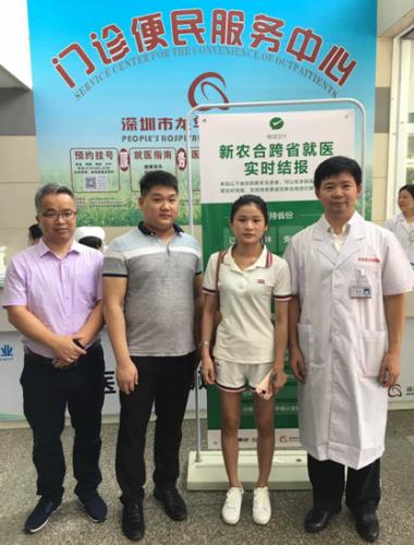 患者及家屬與深圳市龍華區(qū)人民醫(yī)院院長羅新樂(右一)、信息科主任金洪長(左一)