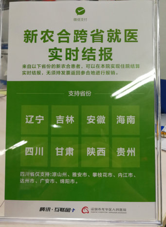 中新網(wǎng)7月25日電 日前,全國首個微信新農(nóng)合支付業(yè)務在深圳市龍華區(qū)人民醫(yī)院上線,經(jīng)過規(guī)范轉診跨省就醫(yī)的新農(nóng)合患者能夠在醫(yī)院實時結報,享受到比回參合地報銷更加便捷的異地實時結算服務,大大縮短了醫(yī)療保險結算時間,提高了患者和醫(yī)院雙方的診療效率。