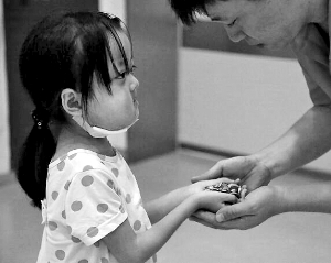 7歲的河南登封女孩王越患有一種非常罕見的病—石骨癥,隨時(shí)可能猝死。妹妹剛剛1歲半,也被查出患同樣的病。父親王向東已在骨髓庫找到全相合供者,待供者檢查身體合格,將會為兩個孩子做骨髓移植。但一個孩子治療費(fèi)用至少50萬元。已花光了家里全部積蓄的王向東,這次來北京,借遍親朋好友才借了不到20萬元,實(shí)在無力承擔(dān)兩個孩子的移植費(fèi)用。聽到爸爸悄悄跟媽媽說借的錢遠(yuǎn)遠(yuǎn)不夠,王越從包里拿出存錢罐,遞給爸爸,“給妹妹治病吧,我大了,不治也沒關(guān)系的,這是我攢下的錢,都拿去吧!保ù蠛訄(bào))