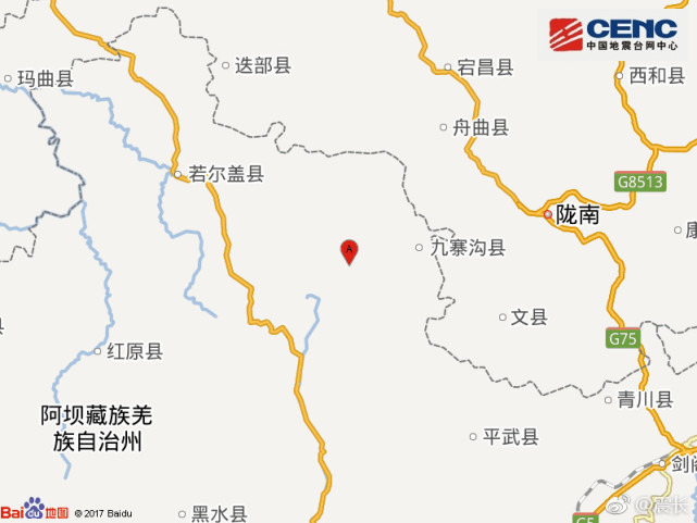 中國(guó)地震臺(tái)網(wǎng)正式測(cè)定:8月8日21時(shí)19分在四川阿壩州九寨溝縣(北緯33.20度,東經(jīng)103.82度)發(fā)生7.0級(jí)地震,震源深度20千米。