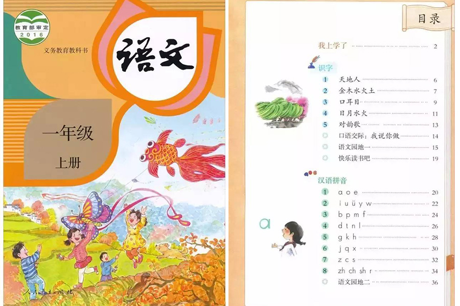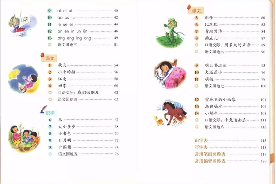 今年新入學(xué)的小學(xué)生拿到語文課本后,打開書,是這樣的: