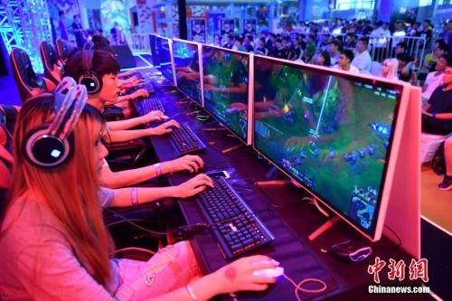 資料圖:2017中國·石家莊第十二屆國際動漫博覽交易會的電競現場,一場《英雄聯(lián)盟》比賽拉開“戰(zhàn)幕”。 中新社記者 翟羽佳 攝