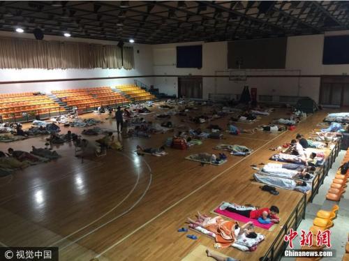資料圖:2017年7月19日晚21時(shí)許,上海師范大學(xué)徐匯校區(qū)為暑假留校大學(xué)生開放體育館過夜避暑。 胡朔 攝 圖片來源:視覺中國