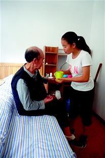 2013年,陳春林重返校園時(shí),一直將父親帶在身邊。每天,她做好三餐,照顧父親的日常生活,并幫他做康復(fù)。在女兒精心照料下,陳世日雖然有一邊身子仍不能動(dòng)彈,但已可以拄拐下地慢走。