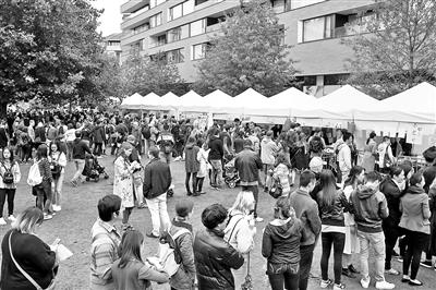 英國倫敦,第三屆英國中國美食節(jié)現(xiàn)場,不少攤位前都排了長隊。 圖片來源:重慶晨報
