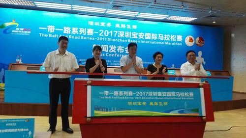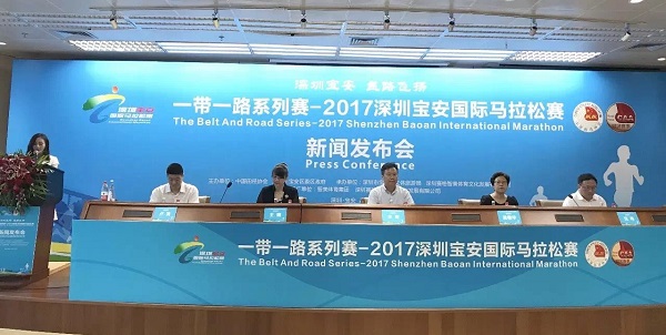 國家體育總局田徑管理中心馬拉松辦公室主任水濤、寶安區(qū)人民政府副區(qū)長梁敏華、寶安區(qū)委宣傳部常務(wù)副部長王曦、寶安區(qū)文體旅游局副局長盧清、智美體育集團(tuán)高級副總裁、深圳賽格智美總經(jīng)理沈偉以及特邀跑團(tuán)代表、寶馬組委會各職能單位代表共同出席了20日的新聞發(fā)布會。2017深圳寶安國際馬拉松賽是由中國田徑協(xié)會、深圳市寶安區(qū)委區(qū)政府共同主辦,深圳市寶安區(qū)文體旅游局、深圳賽格智美體育文化發(fā)展有限公司聯(lián)合承辦。
