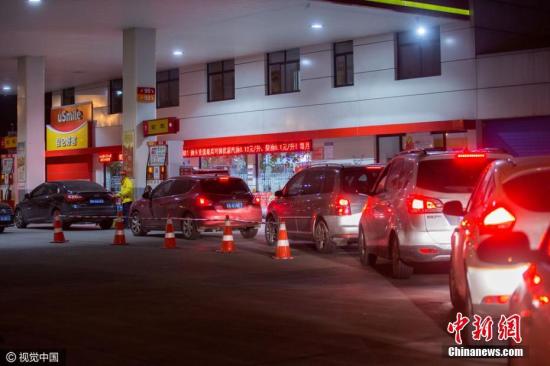 資料圖:2016年12月14日,杭州市眾多車主在加油站排隊(duì)加油。圖片來源:視覺中國