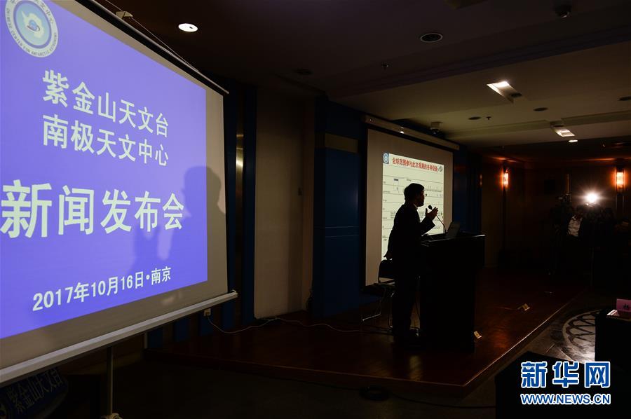 10月16日,在位于南京市的中科院紫金山天文臺舉行的新聞發(fā)布會現(xiàn)場,中科院南極天文中心主任王力帆介紹相關(guān)研究情況。